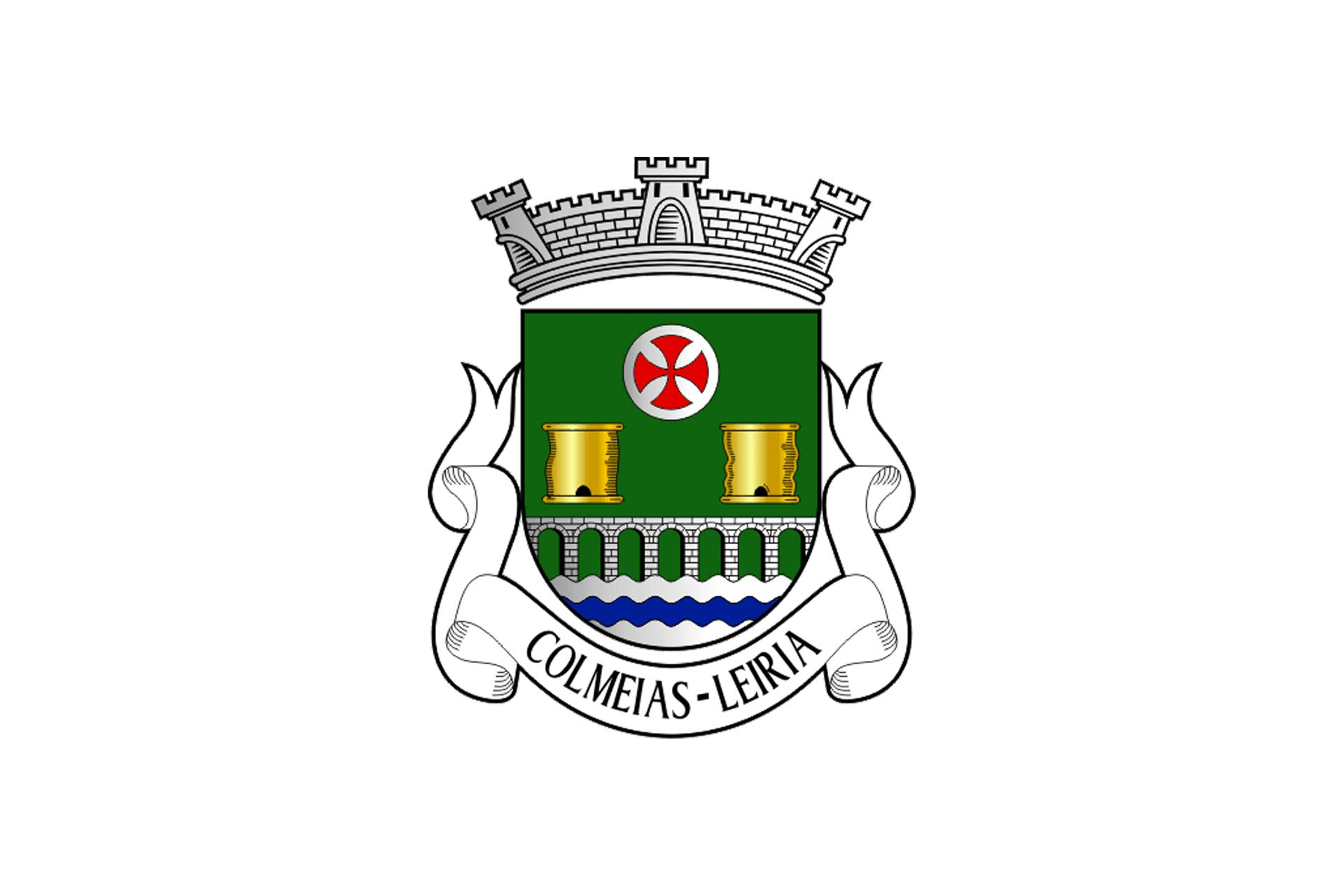 Escudo de verde, círculo de prata carregado de uma cruz da Ordem dos Templários, de vermelho e dois cortiços de ouro, realçados de negro, tudo alinhado em roquete;