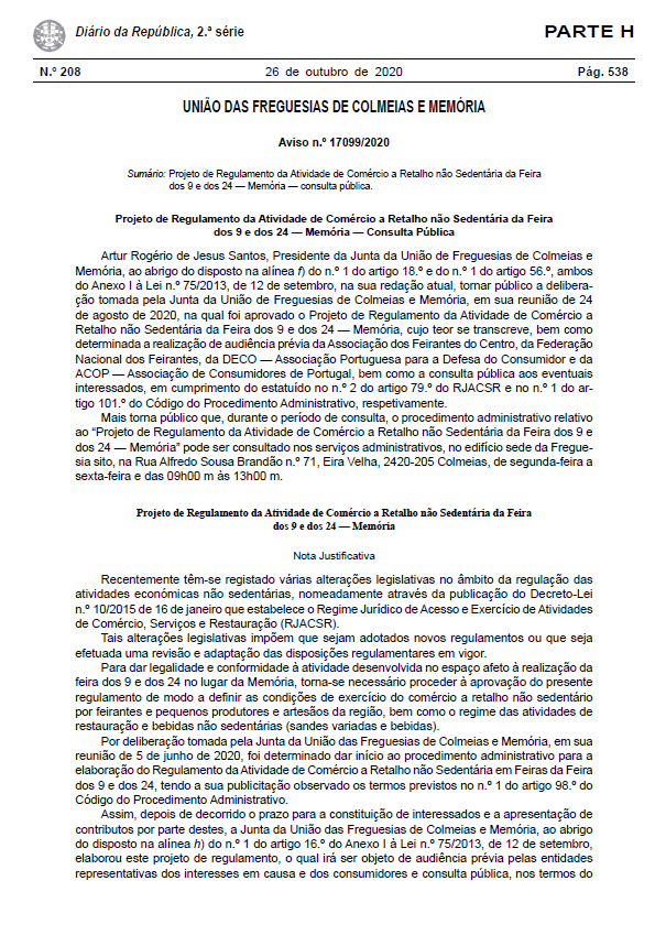 Projeto de Regulamento da Atividade de Comércio e Retalho não Sedentária da...