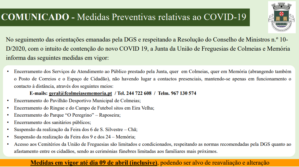 Comunicado - Medidas Preventivas relativas ao COVID-19