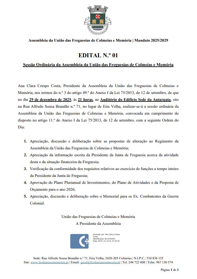 O atendimento da Sr.ª Presidente do Executivo à população é efetuado por marcação prévia.